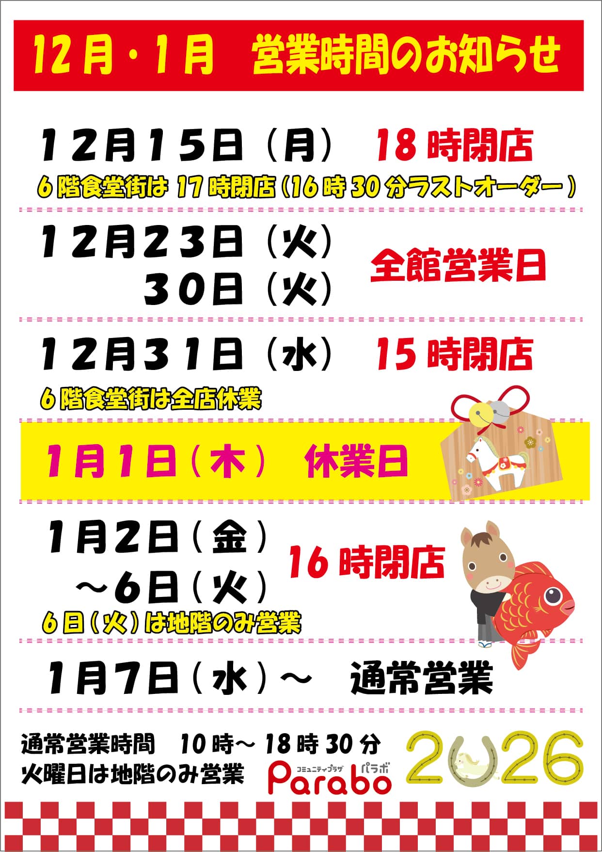 【2025-2026年末年始 パラボ営業日・営業時間のお知らせ】